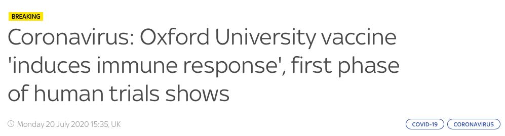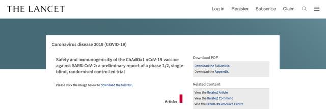 牛津大学正在研发的新冠疫苗传出喜讯,第一阶段的人体试验显示,疫苗安全并产生了免疫反应。