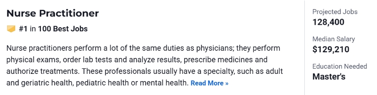 在最佳STEM职业、最佳健康护理职业中,执业护士也位列第一,且工作报酬丰厚,大多数人的薪水都达到了六位数。