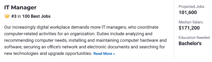 几乎所有企业组织都需要IT经理,其职责包括人员协调,升级现有软件或硬件,以及与供应商就当前产品的服务或购买新产品进行沟通。